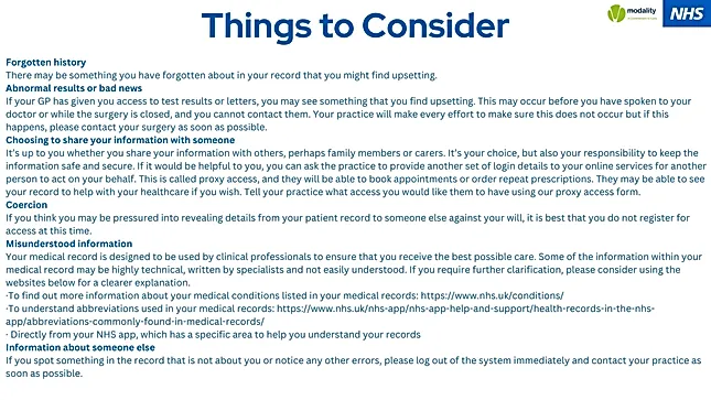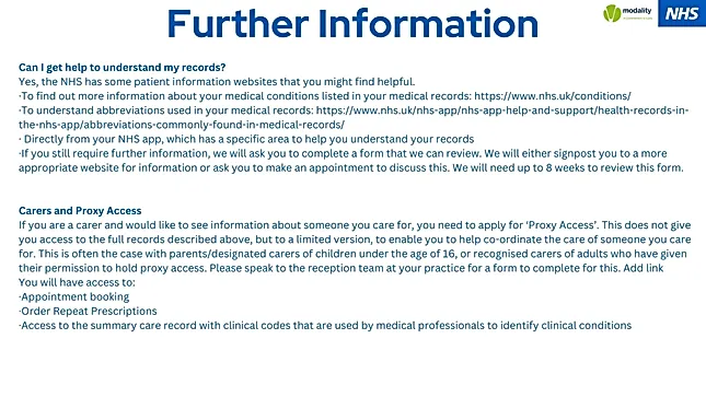 If you are someone who needs a carer to help you, we are able to grant your carer access to limited aspects of your records too.